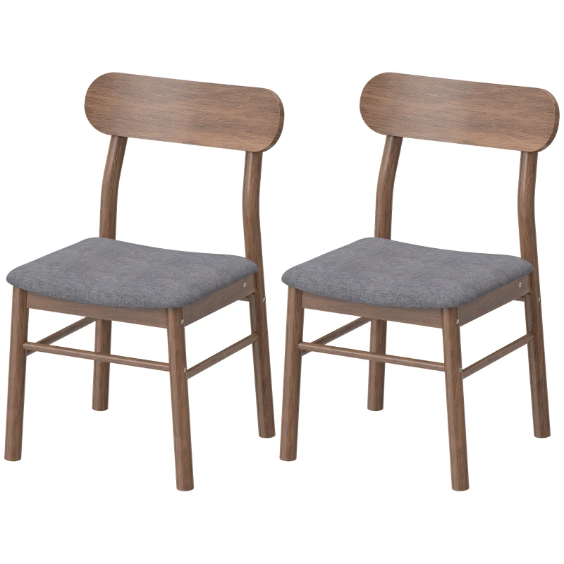 HOMCOM Set of 2 Dining Chairs, Upholstered Dining Room Chairs with Rubberwood Legs and Padded Seat for Kitchen, Gray