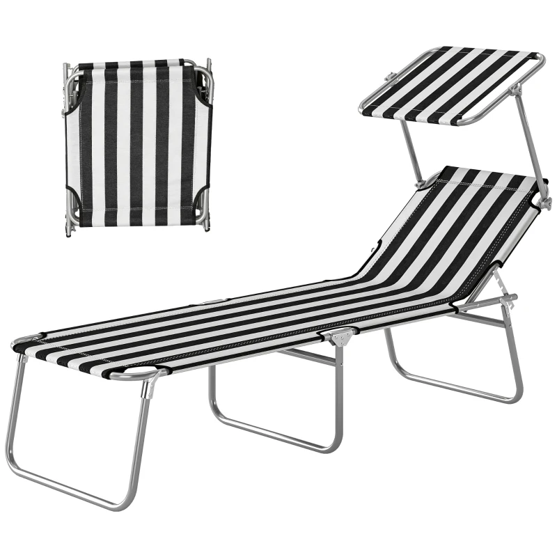 Outsunny Outdoor Pool Chaise Lounge Chair, Folding Tanning Chair with Sun Shade, Black and White