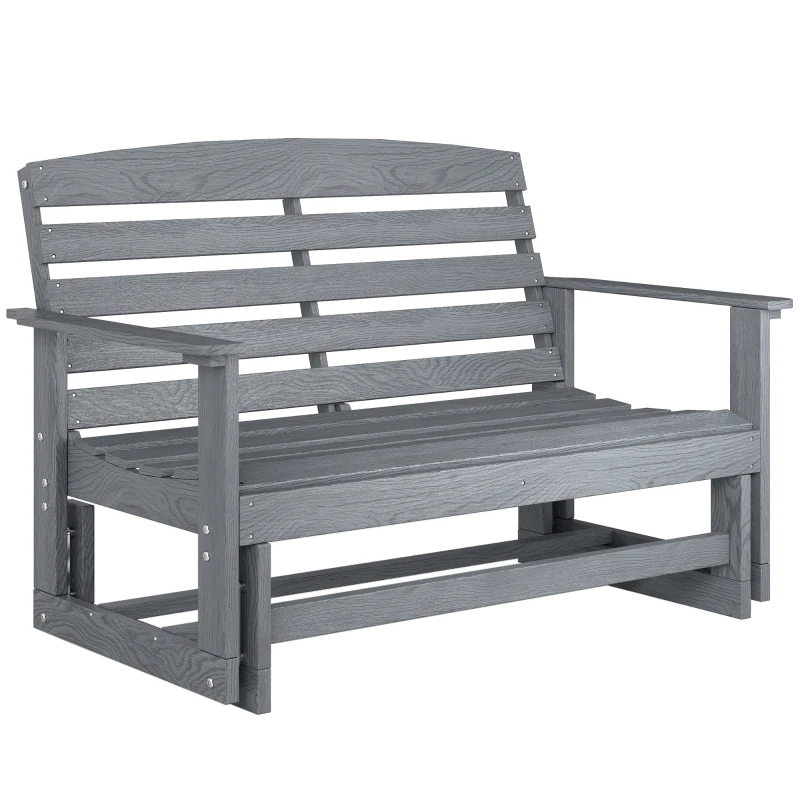 Outsunny Patio Glider Bench w/ HDPE Slatted Double Rocking Chair, Distressed Gray